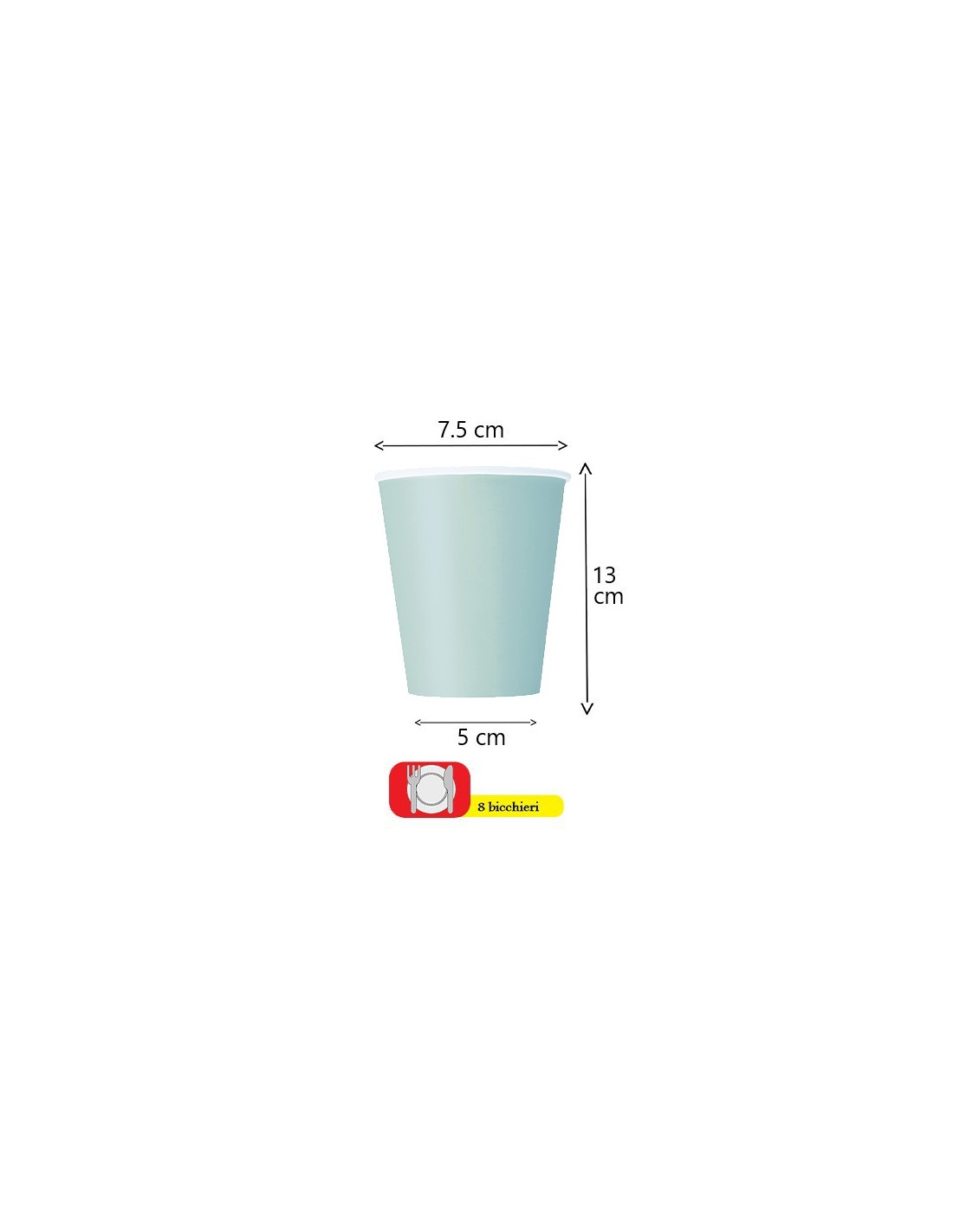 Essi sono di carta e color verde menta e possono  contenere fino a 266 ml di bevande. Ogni bicchiere misura circa 9 cm x 7,5 cm di diametro.