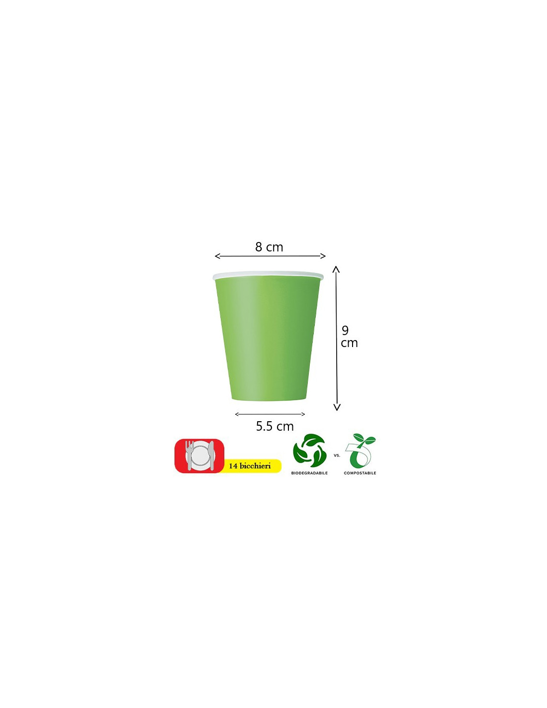 Piatti di carta diametro 23 cm, Bicchieri di carta BIODEGRADABILI 266 ml, Tovaglioli 33x33 cm in carta. In omaggio, vi verranno...